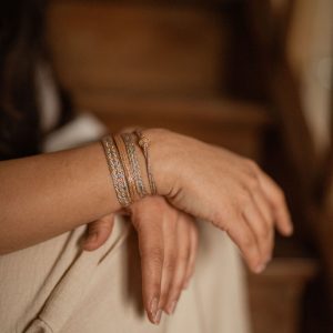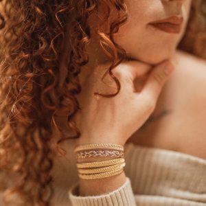 Laissez-vous séduire par le duo Alhambra, une combinaison audacieuse et raffinée qui associe les tons profonds de l’acajou à l’éclat intemporel du doré et de l’argenté, créant une harmonie unique. Ce duo peut se porter en superposition pour un effet affirmé ou seul pour une allure plus minimaliste, sublimant ainsi toutes vos tenues avec une…