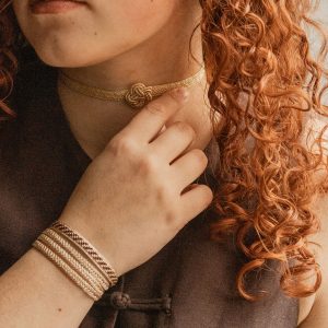Le bracelet Jasmin, tissé dans des tons doux et harmonieux, évoque la fraîcheur des soirées d’été parfumées au jasmin. Discret et raffiné, son look minimaliste s’associe facilement à toutes les tenues et convient à chaque occasion. Fabriqué avec amour au Maroc . Façonné avec des fils métallisés dorés, subtilement mêlés à de la soie ou…