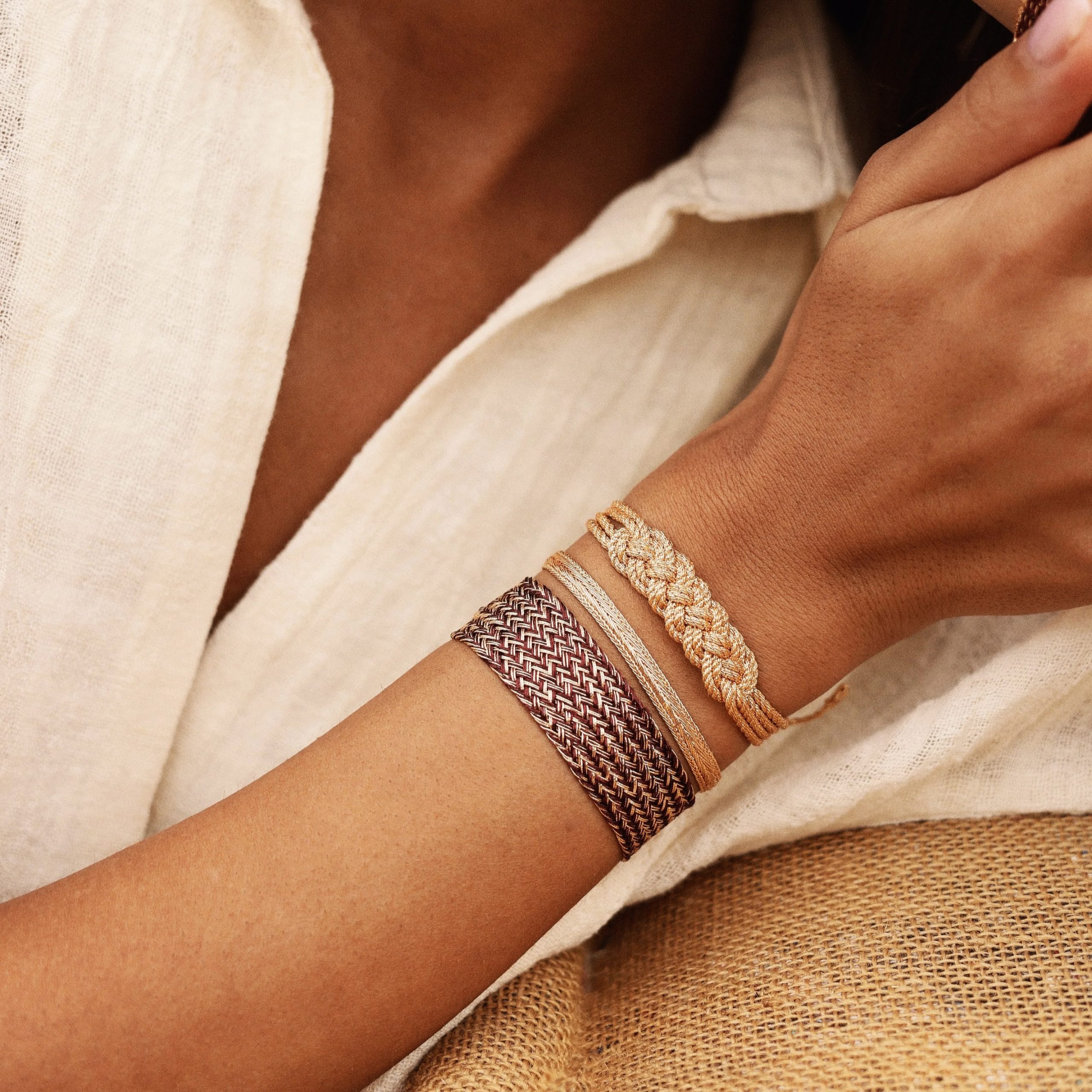 Conseil : Le tissu est imperméable. Cependant, pour conserver une brillance durable, veillez à retirer vos bijoux avant de prendre une douche, de faire du sport ou des tâches ménagères.