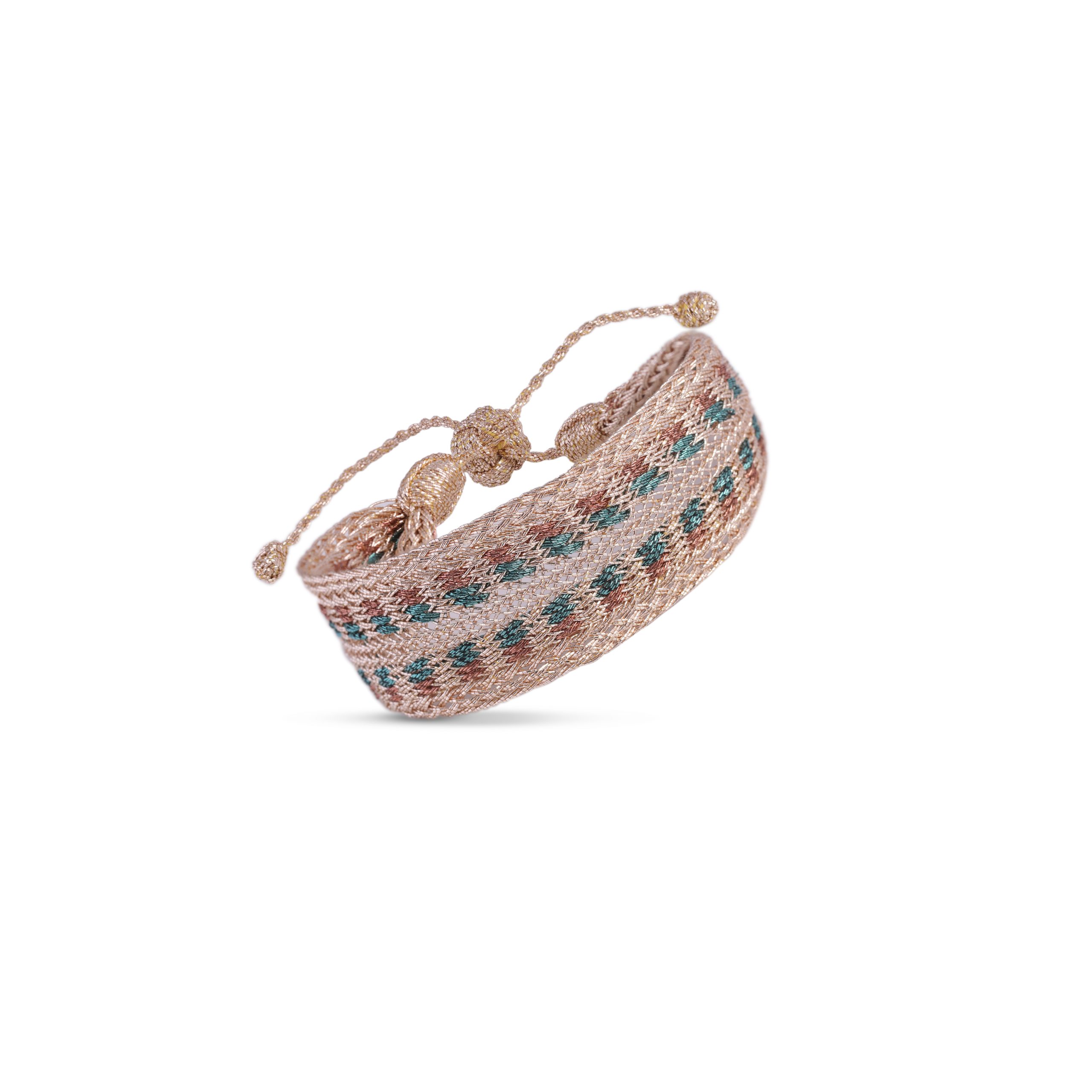 Le bracelet Rosée d’Orient donnera un coup de peps à votre poignet avec l’éclat du rose Gold, la chaleur envoûtante de la terracotta et les touches profondes de vert. Un mélange de nuances qui évoque la richesse et la fraîcheur d’une oasis au coeur du désert.