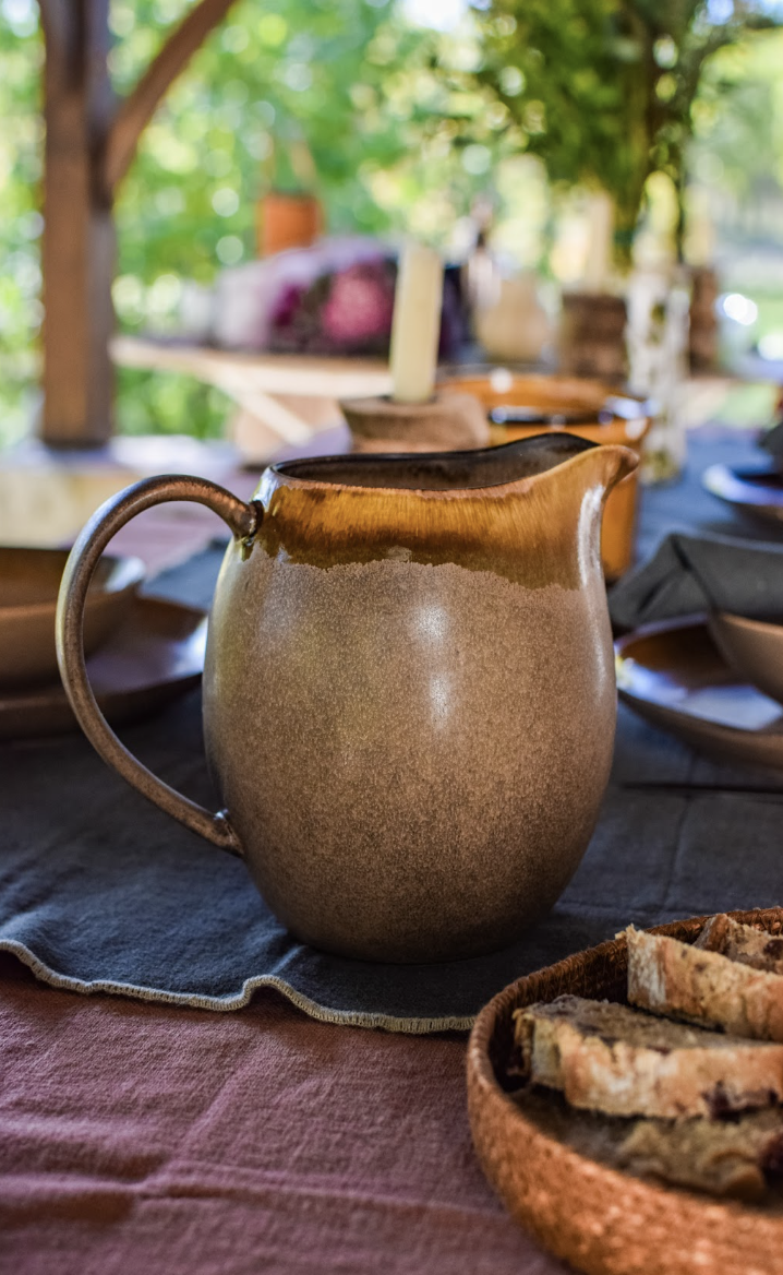 Apportez une touche méditerranéenne à vos repas avec la collection Antalya. Avec sa finition brune élégante, son bord brillant et sa construction robuste, cette cruche allie authenticité et raffinement. Elle accompagnera aussi bien vos instants du quotidien que vos grandes occasions. Grâce à son émaillage réactif, chaque pièce présente de subtiles variations, garantissant une collection unique.