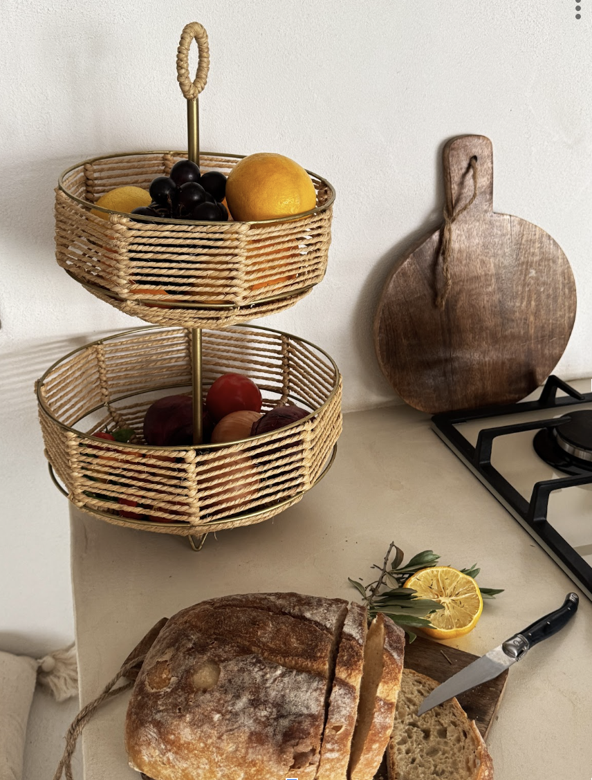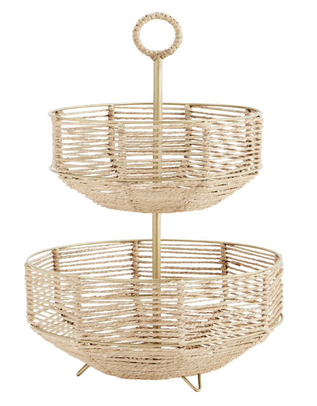 Apportez charme et fonctionnalité à votre intérieur avec cette étagère-panier à deux niveaux. Sa structure en fer s’associe à la douceur naturelle de la jute tressée pour un rendu à la fois robuste et chaleureux. Parfaite pour organiser vos fruits, légumes et condiments (ail, oignons…)