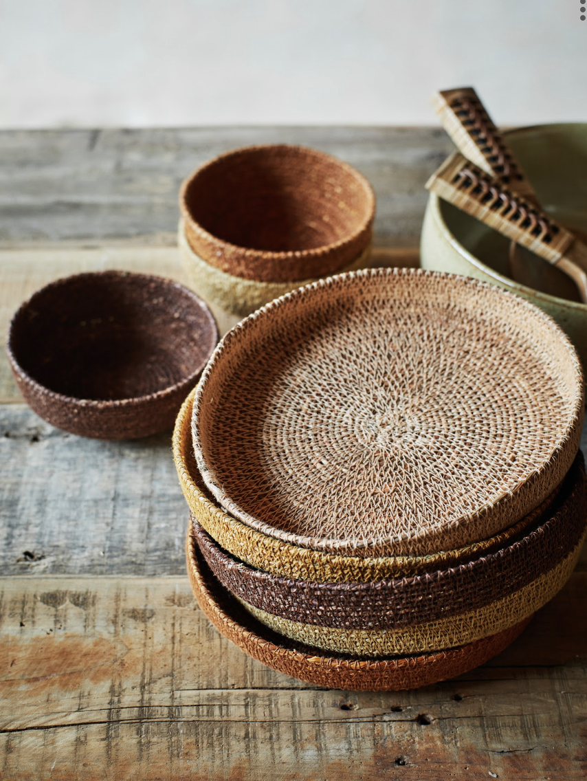 Ces jolis plateaux ronds sont fabriqués à la main en fibres naturelles tressées. Déclinés en plusieurs nuances aux tons chauds, ( ocre, miel, brun et terre).