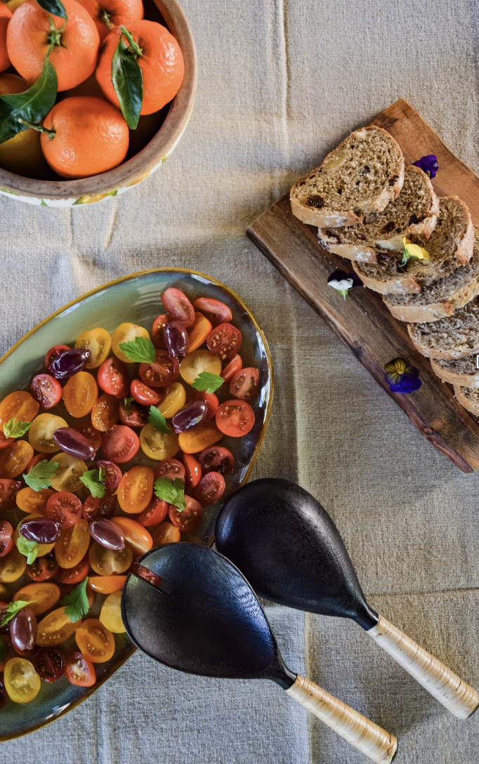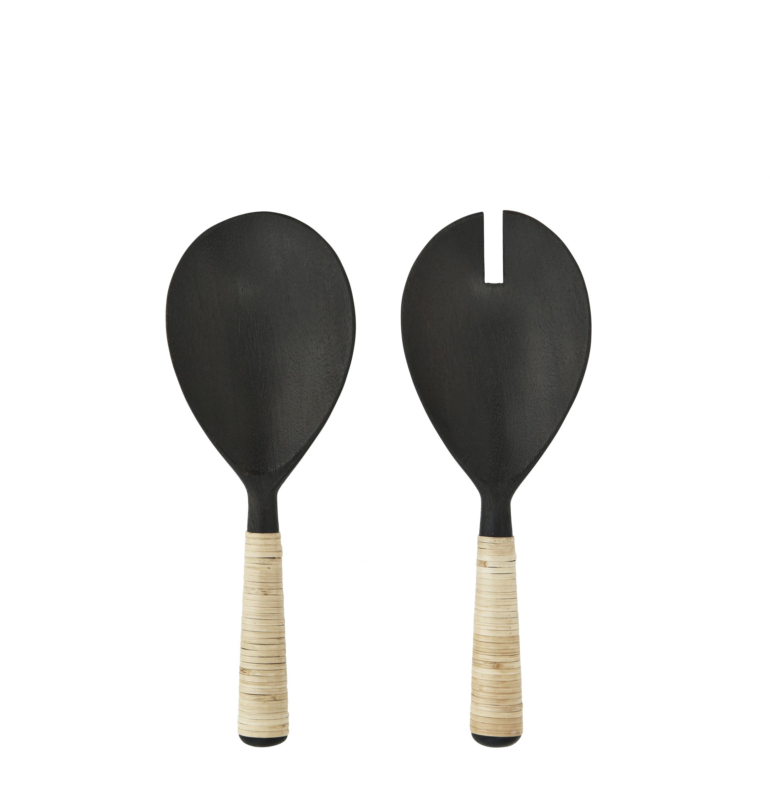 Le set de deux couverts Mykonos, fabriqué en bois de manguier brûlé et doté de manches en rotin. Épuré, authenticité et modernité sont au rendez-vous avec ce joli set.